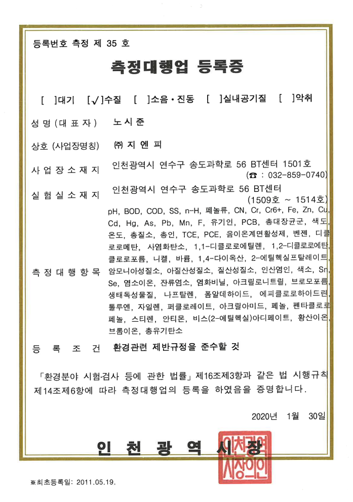 측정대행업등록증