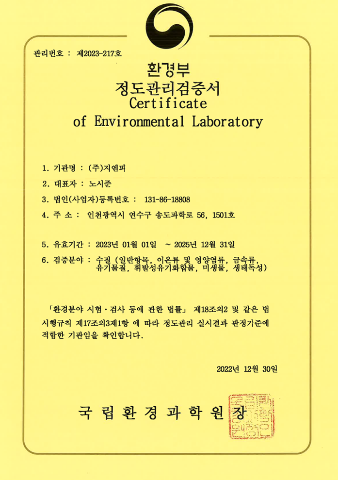 정도관리검증서(수질)